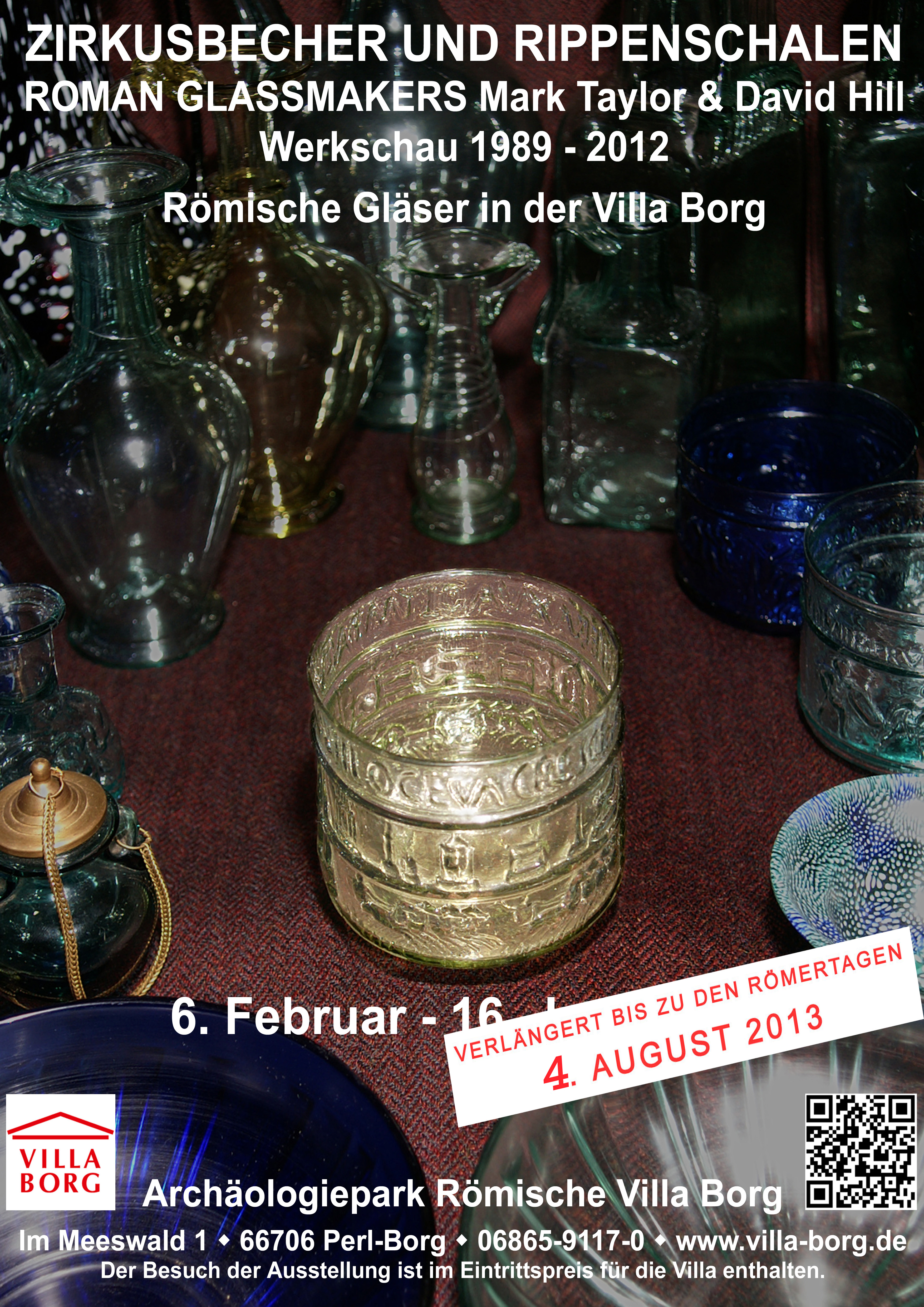 Die Ausstellung präsentiert vom 6. Februar bis zum 4. August 2013 im Archäologiepark Römische Villa Borg über 200 rekonstruierte römische Glasgefäße der ROMAN GLASSMAKERS Mark Taylor und David Hill sowie römische Originalfunde aus dem Fundmaterial des Archäologieparks Römische Villa Borg und gibt einen Einblick in die Fertigung römischer Gläser.